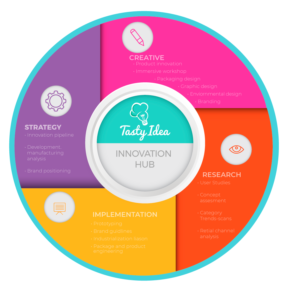 We are an agency of experienced entrepreneurs and former food and beverage executives with cross-category expertise in brand building, sales, marketing, product development and commercialization. Our focus is Food Imagination and brand design. Research, creativity and invention will reach your ideal consumers and enhance whole product categories. Use our innate understanding of consumer behavior and food trends. Let’s transform ideas into viable business concepts. We want to help you build a disruptive brand and product.